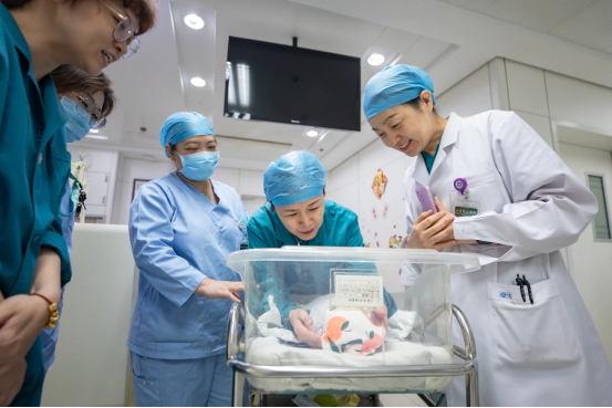 ▲郎景和院士與樊慶泊主任醫(yī)師為新生兒做檢查
