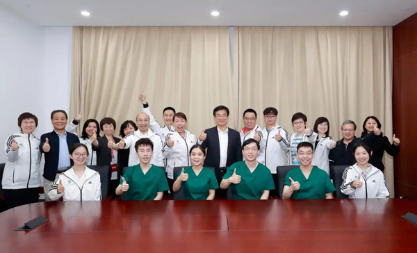 王辰院校長與勇奪冠軍的臨床醫(yī)學(xué)八年制代表隊合影