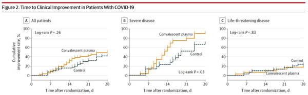 雖然與對(duì)照組相比,試驗(yàn)組的患者28天的臨床改善率或死亡率方面均無(wú)統(tǒng)計(jì)學(xué)意義的改善,但確實(shí)提供了在重癥患者亞組中可能獲益的重要提示,并表明抗SARS-CoV-2的高滴度抗體可能具有抗病毒功效。效果研究成果為新冠病毒救治提供了重要依據(jù)。