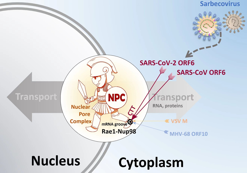 圖. Sarbecovirus輔助蛋白ORF6抑制天然免疫的模式圖