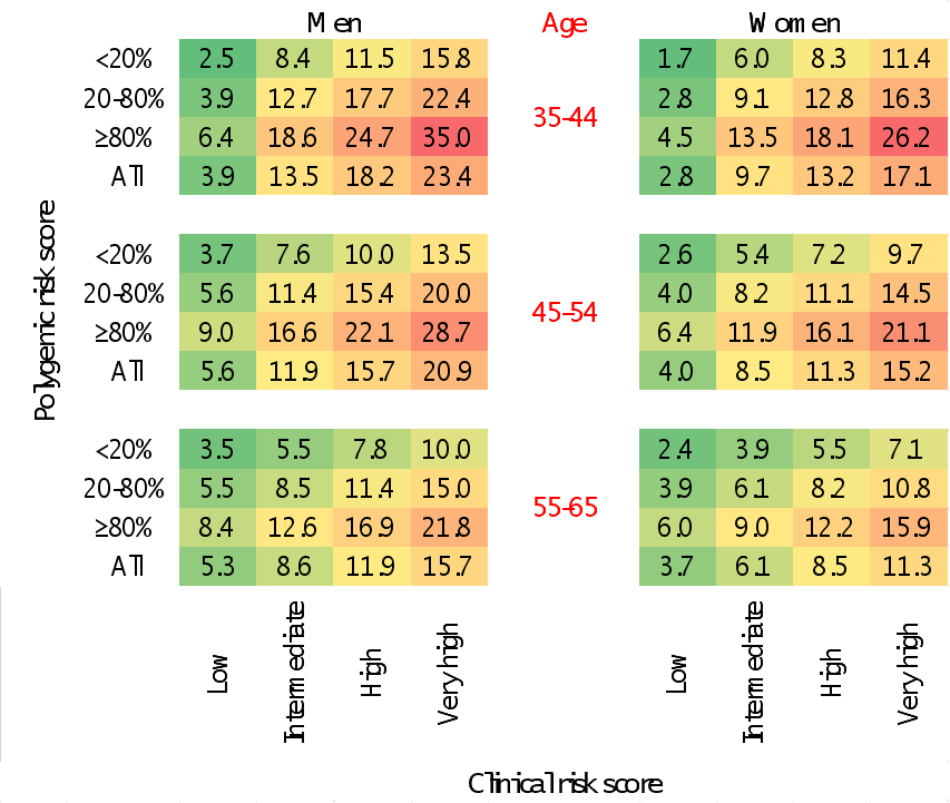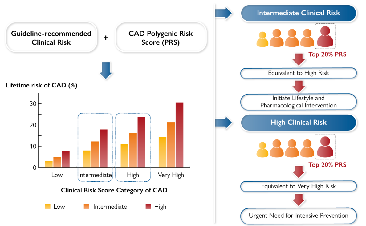 圖2. 多基因風險和臨床風險聯合評估指導心血管疾病防治決策