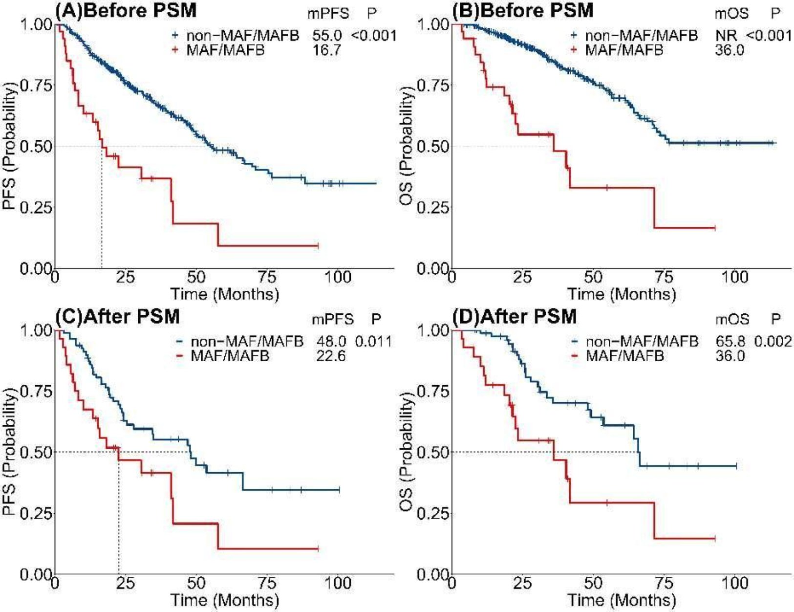 綜上,該研究發(fā)現(xiàn),盡管在MM患者中MAF易位常常合并其他高危遺傳學(xué)因素出現(xiàn),但其仍然是MM的重要預(yù)后因素,強(qiáng)調(diào)了將t(14;16)/t(14;20)納入預(yù)后分層系統(tǒng)的重要性。