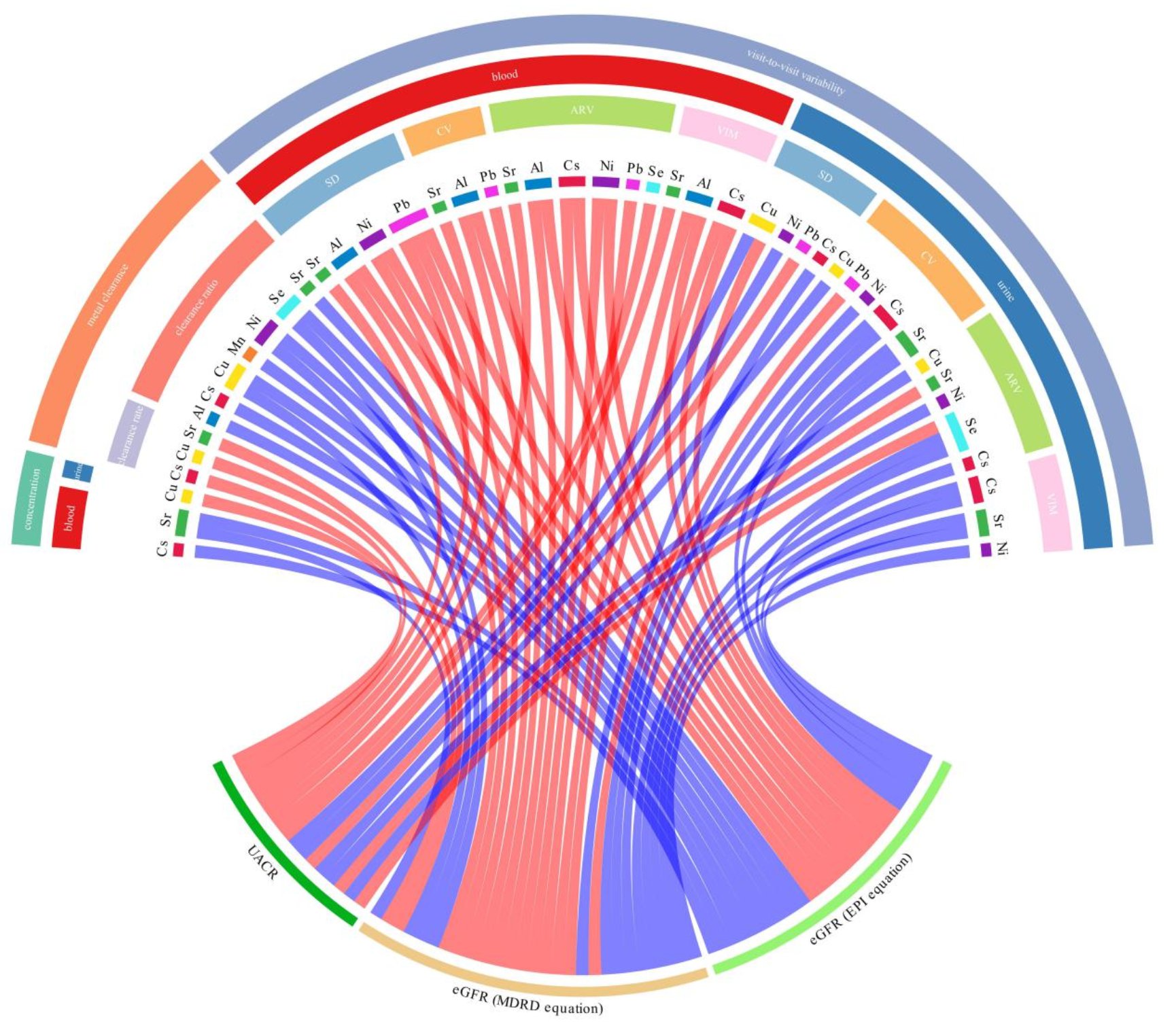 研究結果表明,尿銅與UACR升高呈顯著關聯。銅、鎳、鍶的清除比與eGFR呈顯著負相關。此外,尿銫和血鍶的訪次間變異性分別與eGFR降低和UACR升高有關(見圖2)。