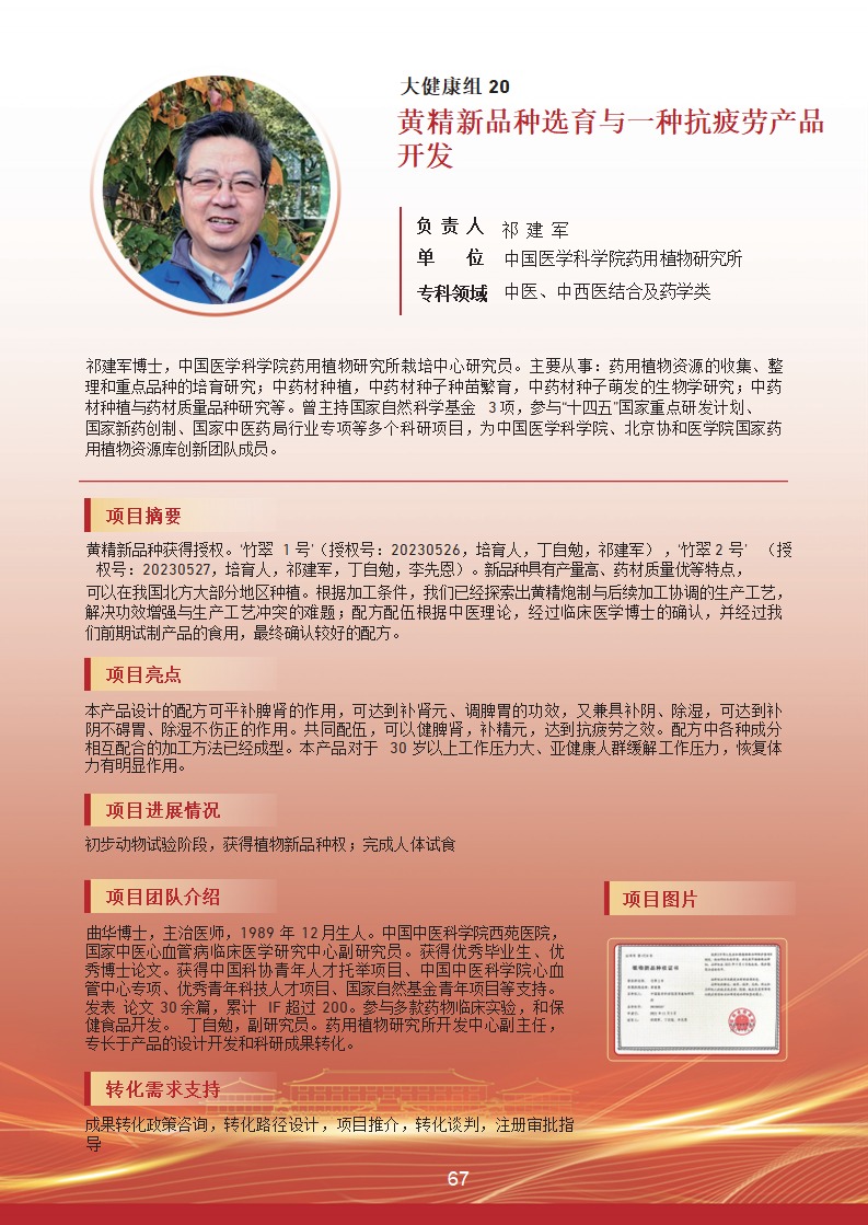 黃精新品種選育與一種抗疲勞產品開發 |