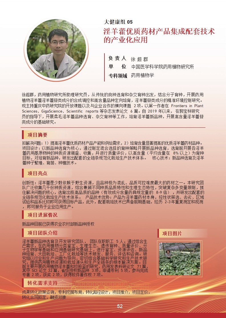 淫羊藿優質藥材產品集成配套技術的產業化應用 |