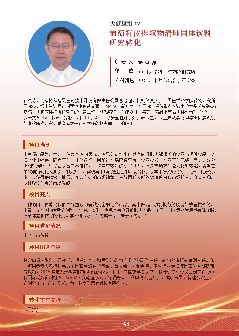 葡萄籽皮提取物清肺固體飲料研究轉化 |