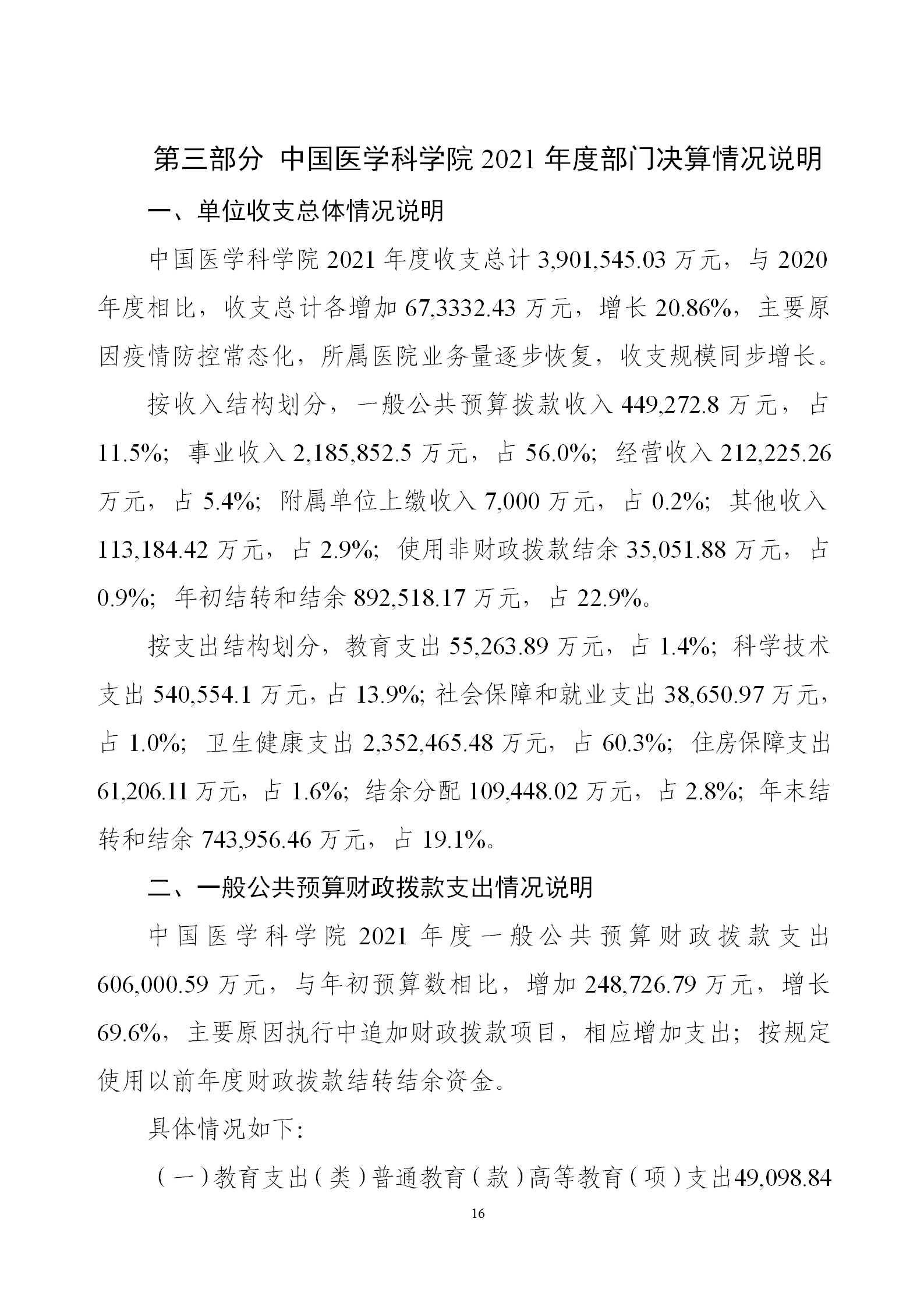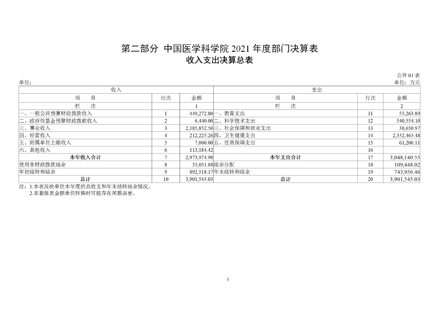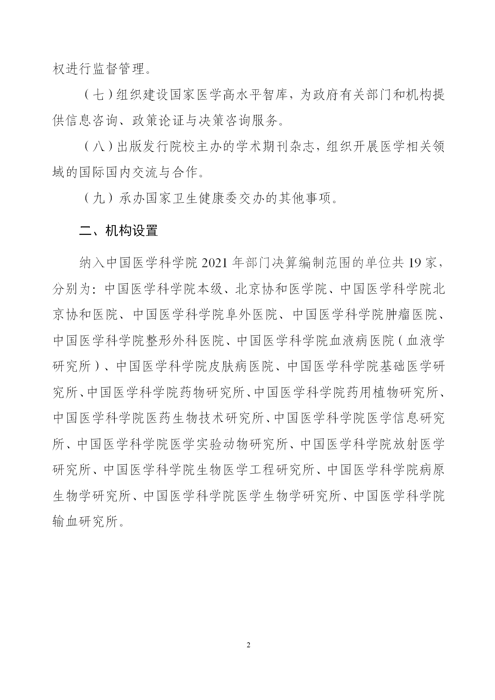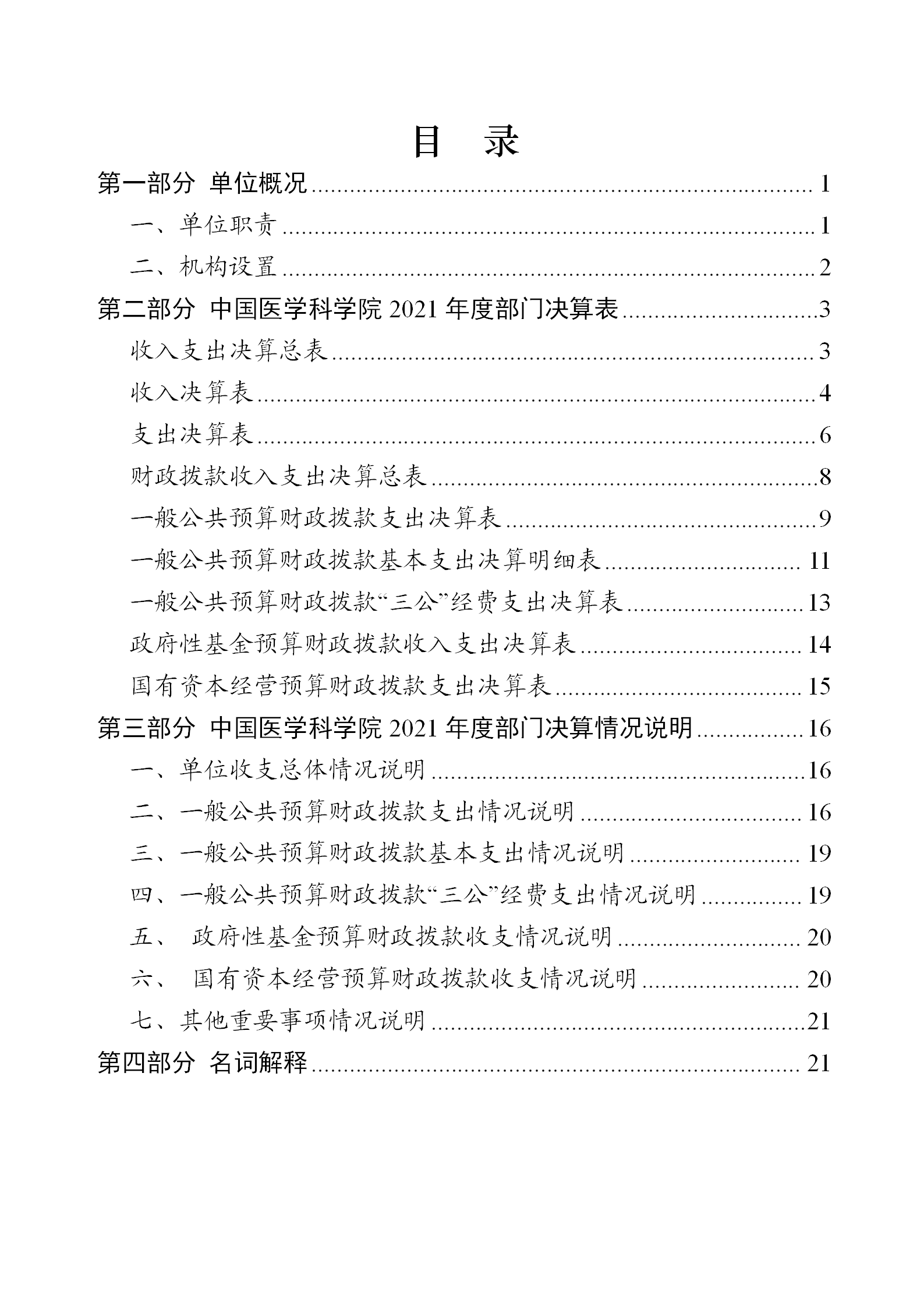 中國醫學科學院2021年度部門決算