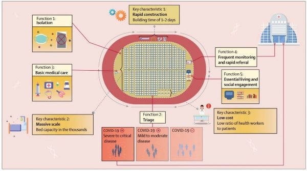 《柳葉刀》(The Lancet)于4月2日發(fā)表由中國醫(yī)學(xué)科學(xué)院王辰院士及海德堡大學(xué)醫(yī)學(xué)院Till B?rnighausen教授領(lǐng)銜的關(guān)于方艙庇護(hù)醫(yī)院(Fangcang shelter hospitals)的衛(wèi)生政策文章。本文描述了武漢市發(fā)生COVID-19期間方艙庇護(hù)醫(yī)院的構(gòu)建與應(yīng)用情況,并闡明其三個(gè)主要特點(diǎn)(建設(shè)快、規(guī)模大、成本低)和五個(gè)主要功能(隔離、分診、基本醫(yī)療、密切監(jiān)測和快速轉(zhuǎn)診、基本生活和社會(huì)活動(dòng))。方艙庇護(hù)醫(yī)院將成為國家應(yīng)對COVID-19以及未來感染病和突發(fā)公共衛(wèi)生事件的一項(xiàng)有力舉措。