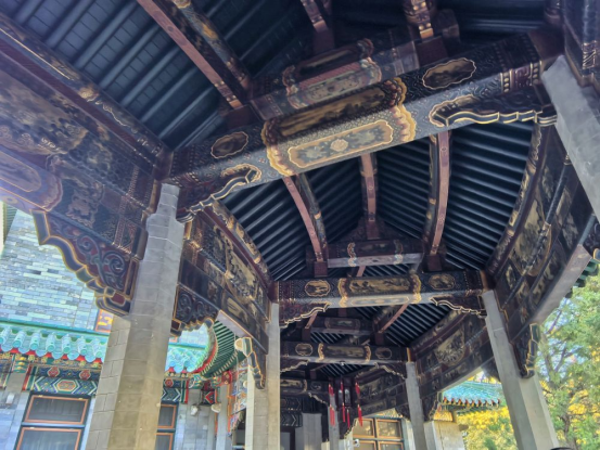 弧形廊因曾被改造成辦公場所而加頂棚,內(nèi)檐彩畫隱藏其中。這次修繕,團(tuán)隊下決心拆除搭建建筑,遺存的民國初年彩畫重見天日。