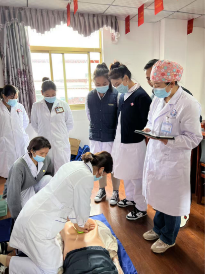石妍(右一)對基層醫院開展急救培訓