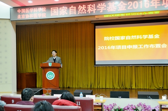 詹啟敏副院校長在講話中首先強調了自然基金在提升科技創新能力、推動健康中國建設中的重要性,肯定了院校“十二五”期間自然基金申報工作取得的可喜成績,所獲經費總數在醫學領域名列前茅,尤其在杰青、優青、重點及創新群體等標志性項目上獲得了多項資助,顯示了院校在相關學科的優勢和水平。同時他指出,做為醫學領域的國家隊,我們還有上升的空間,各單位對于自然基金的申報要給予高度重視,做好組織和宣傳,積極謀劃標志性項目,切實提高項目申報質量和水平。