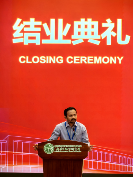 孟加拉國發展科學與健康計劃研究所Abu Bakar Siddik先生作為學員代表發言,他首先代表所有學員向授課老師、志愿者為學員提供的先進課程和周到服務表示感謝。他認為此次培訓班拓展了他的見解,并激發了他學習更多知識的興趣。不同國家的學員形成了一個真正豐富多彩的多元文化聯盟,彼此建立了深厚的友誼,這段培訓經歷讓他終身難忘。