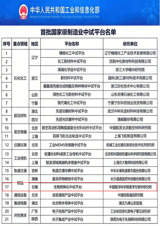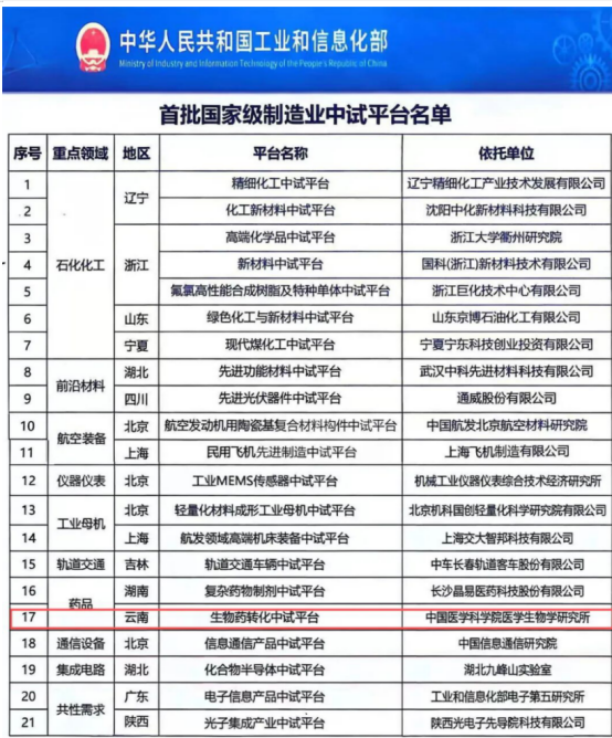 2025年12月11日,中國(guó)醫(yī)學(xué)科學(xué)院醫(yī)學(xué)生物學(xué)研究所(以下簡(jiǎn)稱“生物所”)建設(shè)運(yùn)營(yíng)的“生物藥轉(zhuǎn)化中試平臺(tái)”成功入選首批國(guó)家級(jí)制造業(yè)中試平臺(tái)。