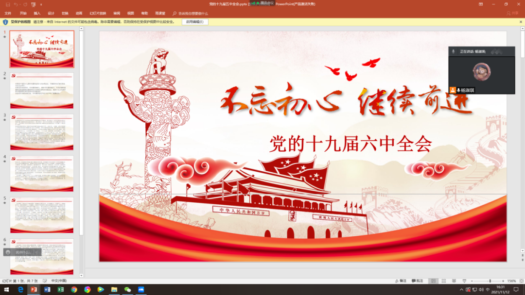 中國(guó)共產(chǎn)黨十九屆六中全會(huì)于11月8日至11日在京隆重召開(kāi)。護(hù)理學(xué)院團(tuán)委第一時(shí)間關(guān)注會(huì)議進(jìn)展,于11月12日由團(tuán)委帶領(lǐng)各團(tuán)支部學(xué)習(xí)相關(guān)精神,迅速在學(xué)生中興起學(xué)習(xí)宣傳貫徹黨的十九屆六中全會(huì)精神的熱潮。受疫情防控要求,各支部組織團(tuán)員線上觀看會(huì)議公報(bào)視頻,引導(dǎo)同學(xué)們深入學(xué)習(xí)會(huì)議精神,深刻領(lǐng)會(huì)黨的初心使命,全面加深對(duì)黨的百年奮斗歷程的偉大成就和歷史經(jīng)驗(yàn)的理解。