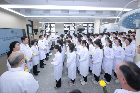 2025年3月11日上午8時(shí),東單三條九號(hào)院解剖樓實(shí)驗(yàn)室里氣氛莊重,北京協(xié)和醫(yī)學(xué)院2022級(jí)八年制醫(yī)學(xué)專業(yè)人體解剖學(xué)開課暨白大衣授予儀式在這里舉行。這場(chǎng)儀式不僅是同學(xué)們醫(yī)學(xué)知識(shí)學(xué)習(xí)的開端,更是對(duì)醫(yī)學(xué)精神傳承的重要時(shí)刻。