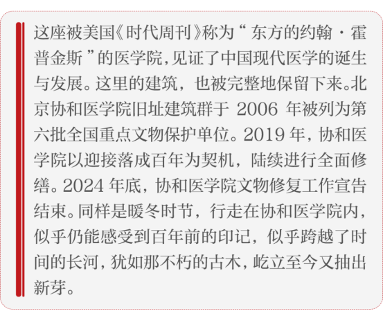 同樣是暖冬時節,行走在協和醫學院內,似乎仍能感受到百年前的印記,似乎跨越了時間的長河,猶如那不朽的古木,屹立至今又抽出新芽。