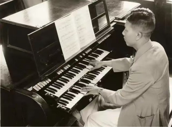 1939年,協和醫院大夫張光璧演奏管風琴。醫學院供圖