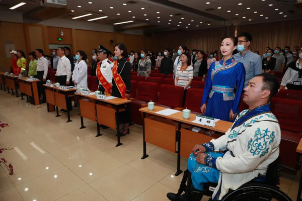 報(bào)告會(huì)在莊嚴(yán)的國歌聲中拉開序幕,現(xiàn)場觀眾集體觀看了“北京榜樣”優(yōu)秀群體介紹短片。
