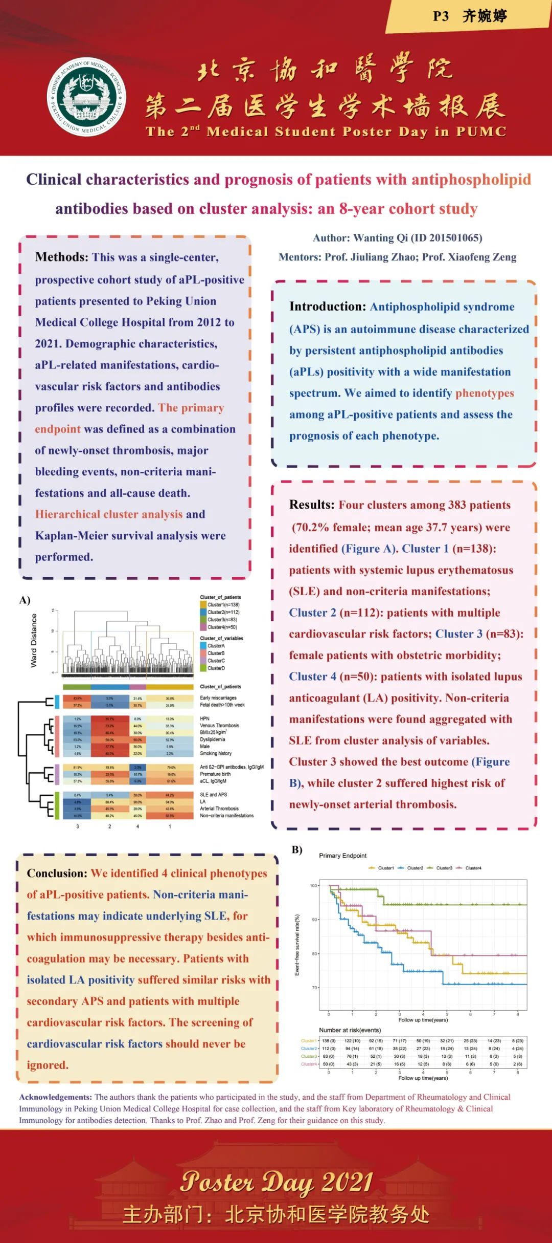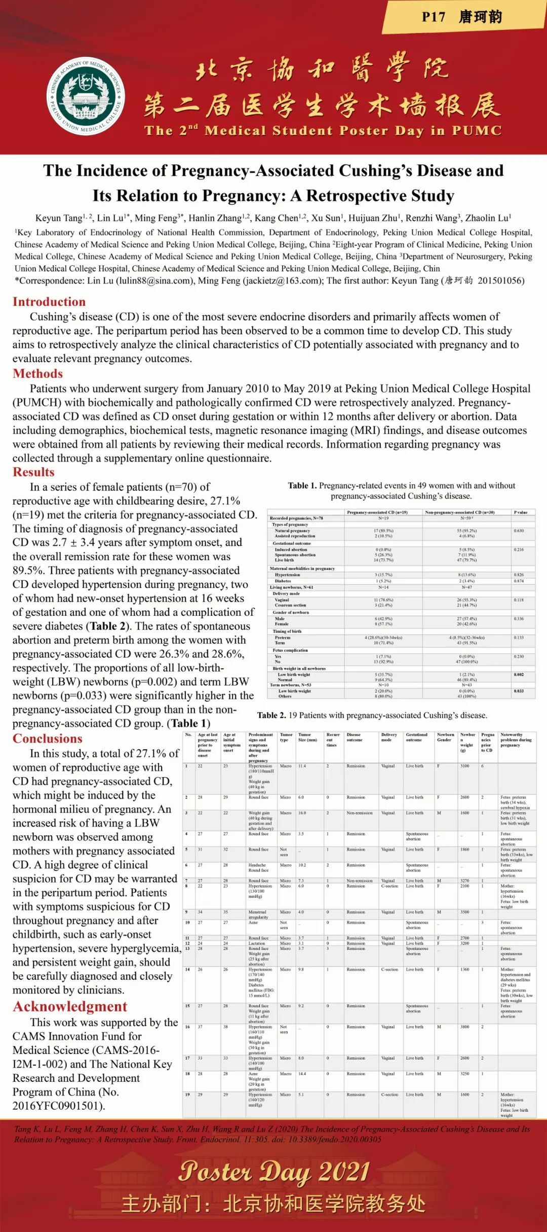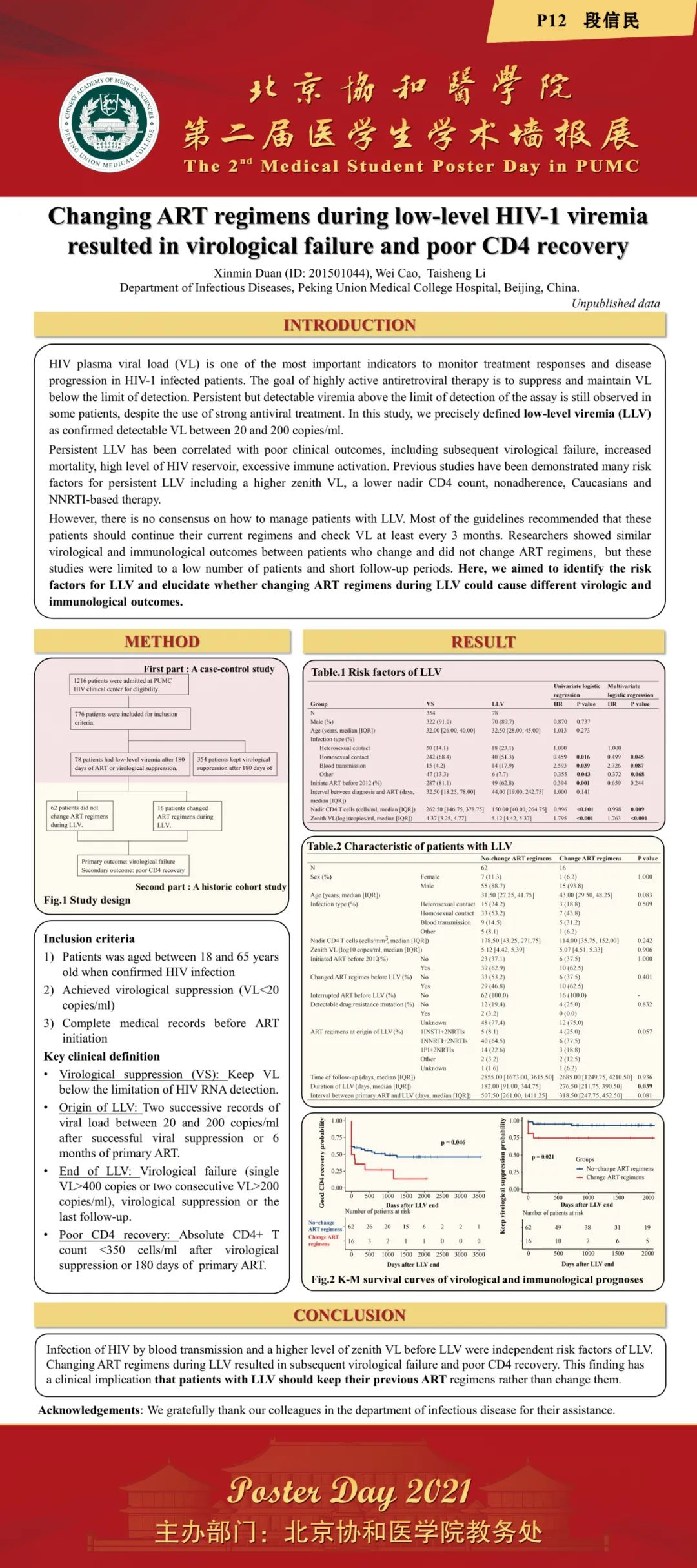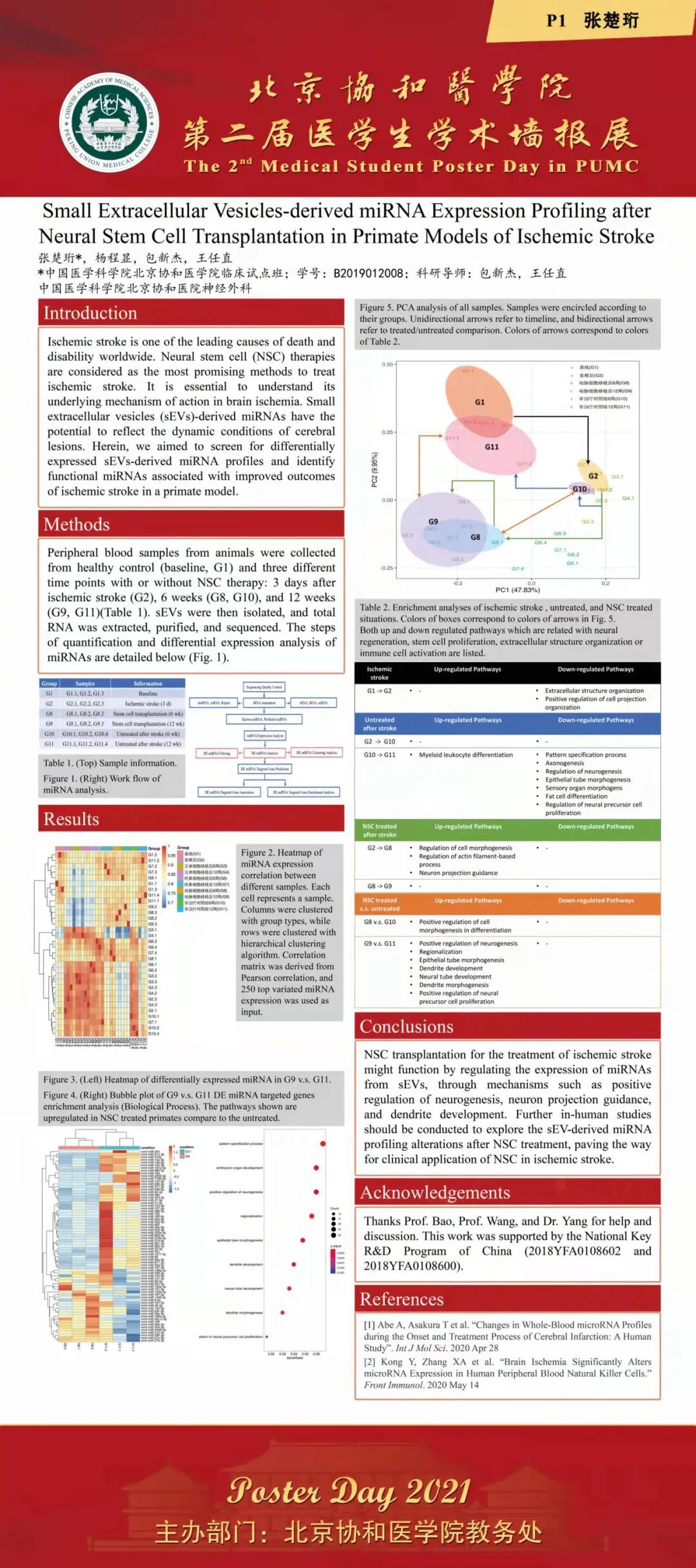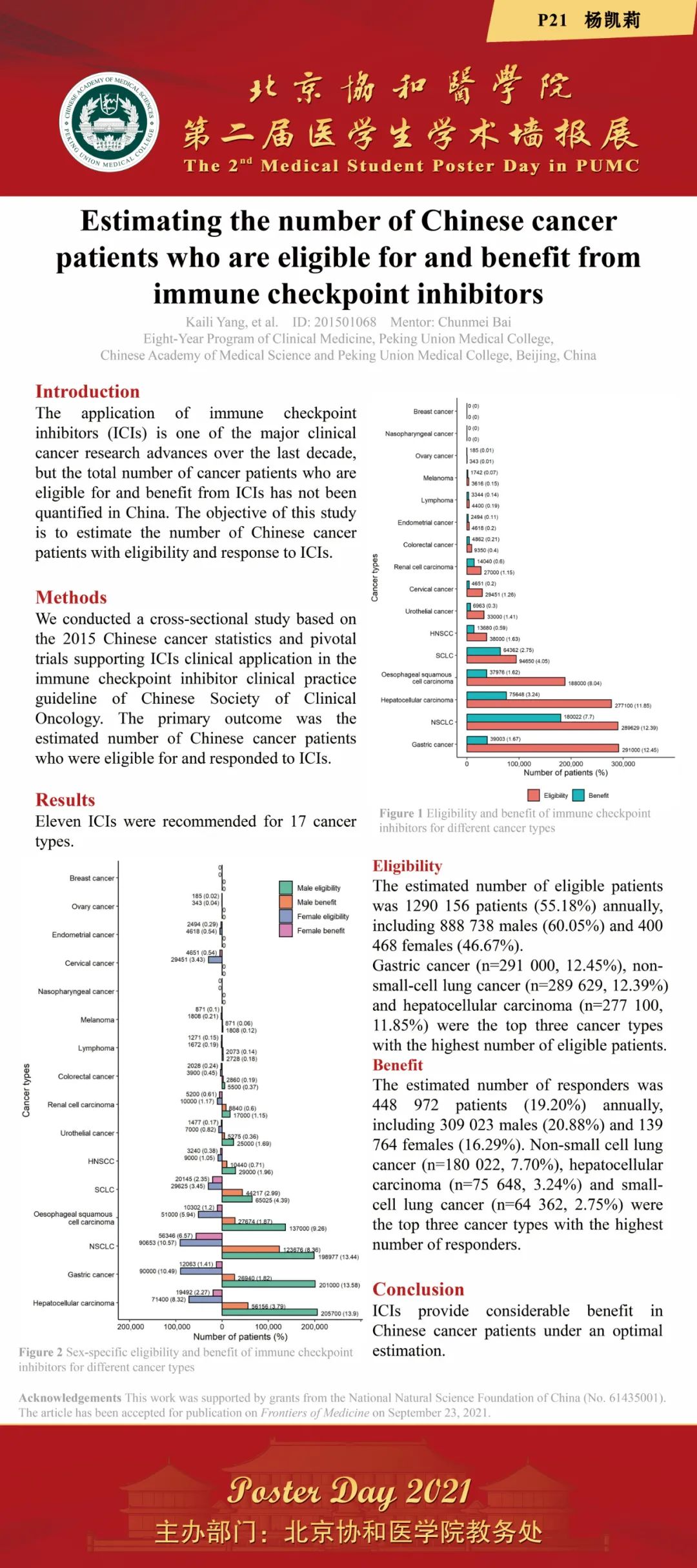 2021年12月3日,由教務處舉辦的“北京協和醫學院2021年第二屆醫學生學術墻報展”在吳憲大樓一層大廳進行了墻報交流和評選活動。經過專家和學生共同評選,評出一等獎2項,二等獎3項,三等獎5項和紀念獎11項。