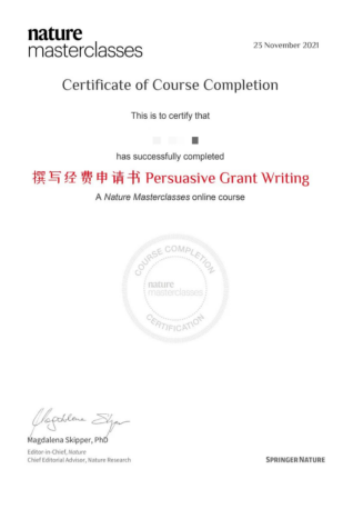 學員完成每項課程后,可下載學習證書,作為接受過相關培訓的證明,證書由《自然》總編輯Magdalena Skipper簽發。