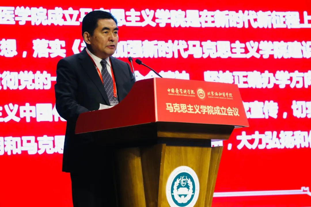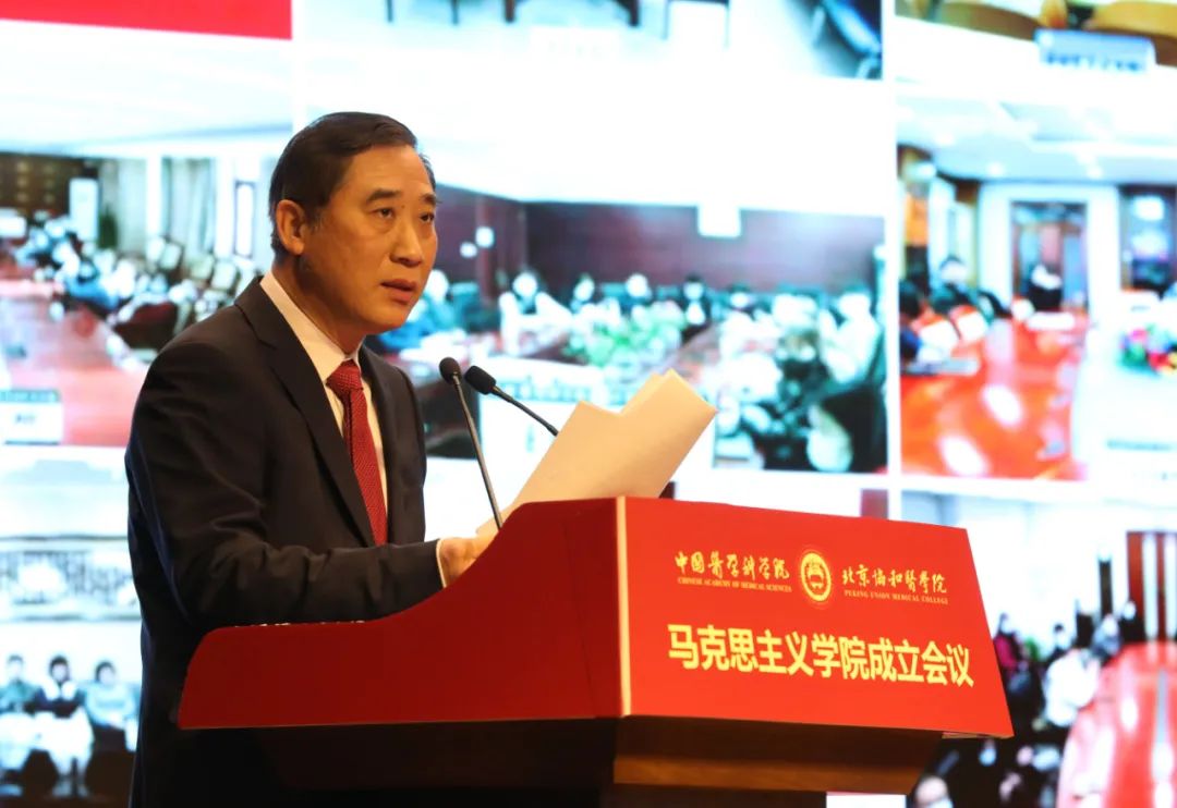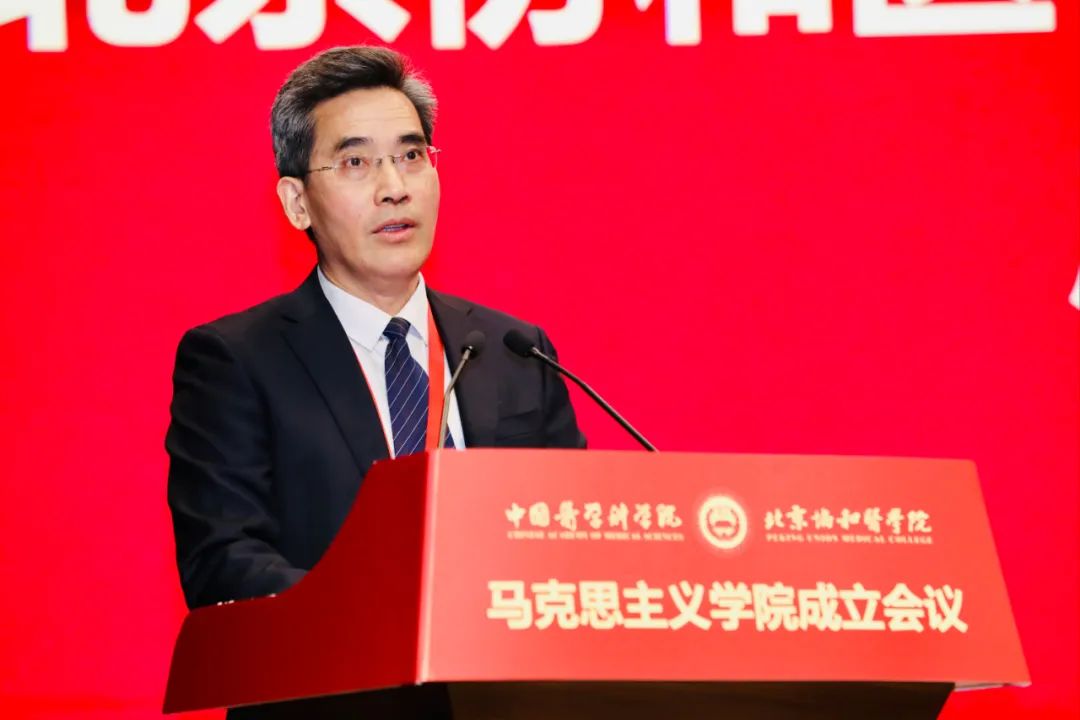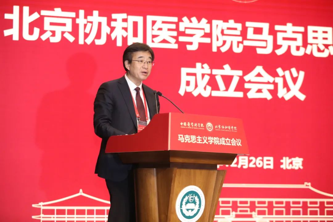 會上,國家衛(wèi)生健康委直屬機(jī)關(guān)黨委常務(wù)副書記楊建立宣讀國家衛(wèi)生健康委黨組書記、主任馬曉偉批示。馬曉偉指出,北京協(xié)和醫(yī)學(xué)院成立馬克思主義學(xué)院是在新時代新征程上全面貫徹習(xí)近平新時代中國特色社會主義思想,落實《關(guān)于加強(qiáng)新時代馬克思主義學(xué)院建設(shè)的意見》的重大舉措。要認(rèn)真學(xué)習(xí)貫徹黨的十九屆六中全會精神,堅持正確辦學(xué)方向,堅持和加強(qiáng)黨的全面領(lǐng)導(dǎo),聚焦馬克思主義中國化時代化最新成果的學(xué)習(xí)研究宣傳,切實發(fā)揮思想政治理論課立德樹人關(guān)鍵課程作用和馬克思主義理論學(xué)科引領(lǐng)作用,大力弘揚(yáng)和傳承百年協(xié)和的優(yōu)秀基因和精神內(nèi)核。