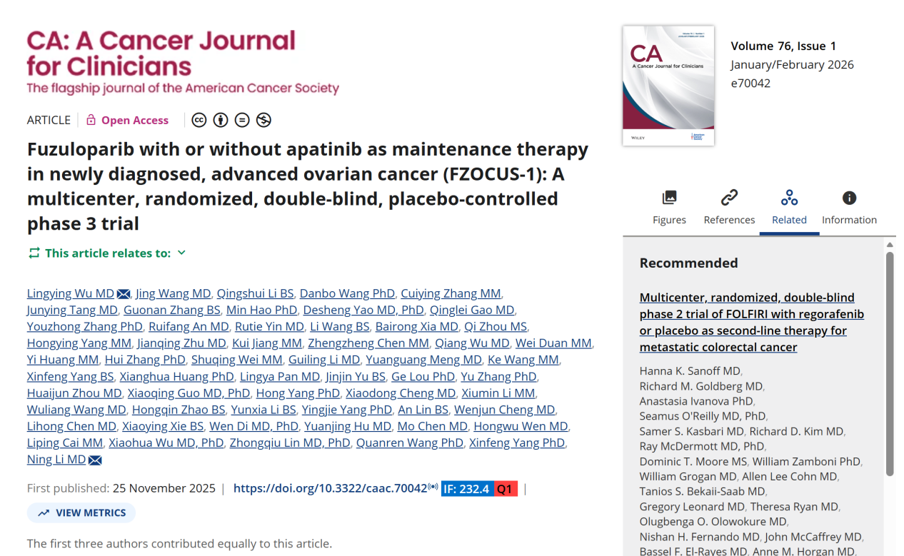 CA開年首刊發表中國醫學科學院腫瘤醫院婦科吳令英、李寧團隊研究成果